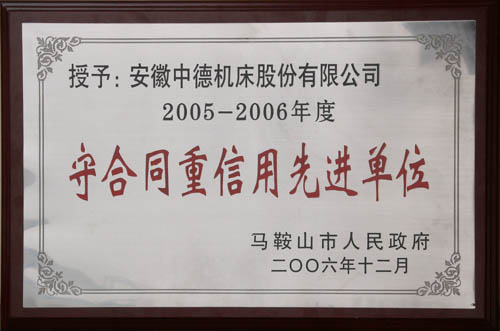 我公司获市当局05-06年度守条约重信誉进步前辈单元称呼